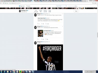 O clube carioca usou as redes sociais para postar uma foto com a com a mensagem #ForçaRoger, por volta das 13h deste sábado. Imediatamente, clubes começaram a retuitar palavras de carinho e desejos de melhora. Em cerca de uma hora, Avaí, Santos, Flamengo, Paraná, Coritiba, América-MG, Figueirense, Palmeiras, Tupi, Fluminense, ABC, Goiás, São Paulo, Volta Redonda, Corinthians, Internacional, Atlético-MG e Chapecoense responderam com mensagens de apoio.