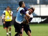 O clima era de descontração, mas um desentendimento entre os jogadores Denis e Marcinho estragou o rachão do Corinthians nesta sexta-feira no Parque São Jorge, no último treino do ano.