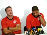 O uniforme de Cuca e Adriano era apropriado para o momento. Camisas vermelhas, sentados lado a lado e olhando para a mesma direção, o treinador e o atacante agiram como bombeiros para tentar amenizar a crise que se instalou no Flamengo.