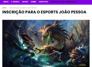 A Prefeitura de João Pessoa, por meio da Secretaria de Juventude, Esporte e Recreação (Sejer), vai apoiar pela primeira vez uma competição de jogos eletrônicos. O E-Sports João Pessoa será disputado nos dias 15, 16 e 17 de outubro, no Unipê, e deve reunir 64 equipes, sendo um total de 320 jogadores. A inscrição para o torneio é gratuita e começou nesta quinta-feira (23), no site: passeidelevel.com/torneio. O jogo escolhido para a competição foi League of Legends.