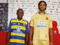 O volante Williams e o goleiro Bruno serviram de modelo para a apresentação dos uniformes. O do goleiro é todo dourado.