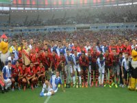 Antes da partida começar, os jogadores posaram para fotografias com as taças. Os cruzeirenses entregaram faixas do título da Copa do Brasil de 2013 aos rubro-negros, que responderam presenteando os jogadores do time mineiro com faixas do título do Brasileirão deste ano. Em campo, porém, o clima não foi tão amistoso, com duas expulsões – Carlos Eduardo e Everton – e lances de perigo. Destaque para o estreante goleiro César, que fez grandes defesas durante a partida e garantiu o empate ao Fla.