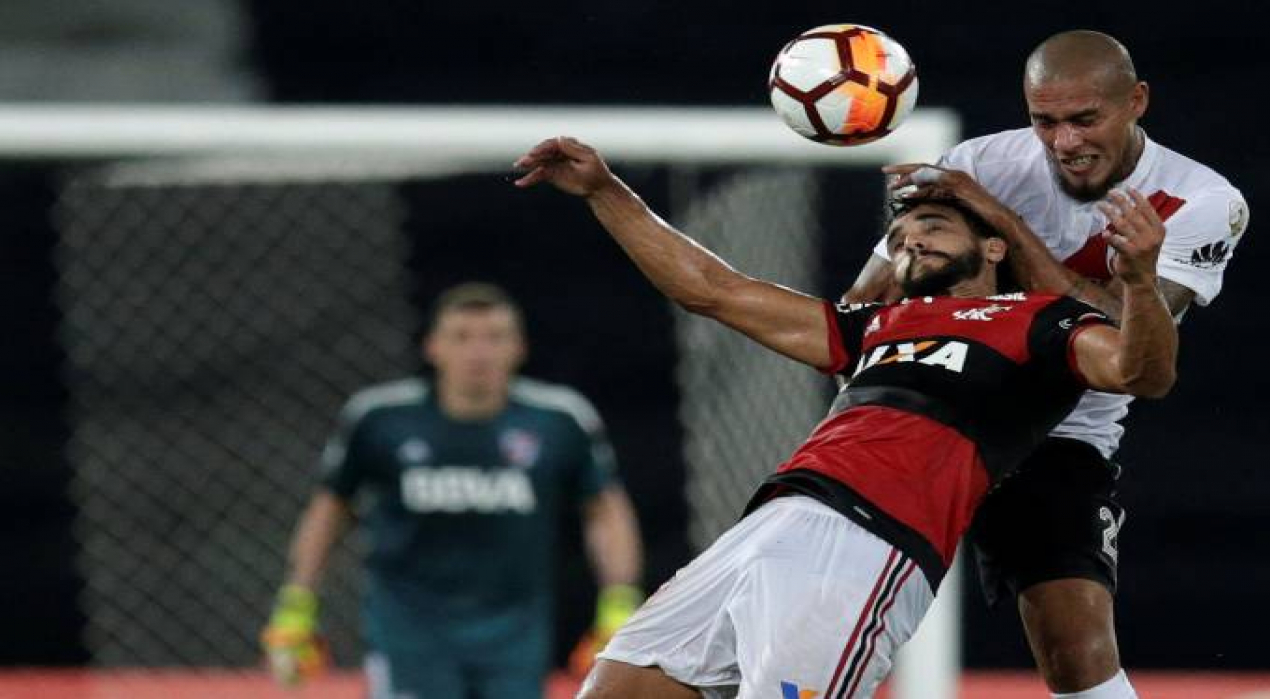O duelo ficou mais tenso, com faltas duras e muitos cartões. Com o seguro Juan e um milagre de Réver, em cima da linha, o Fla segurou o River até os minutos finais. O empate saiu dos pés de Mayada. A bola se ofereceu na entrada da área e o meia chutou forte. Diego Alves chegou a tocar na bola, mas não evitou o gol.