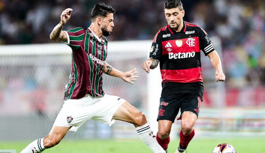 Arrascaeta disputa bola com Jemmes na final do Campeonato Carioca entre Fluminense e Flamengo, no Maracanã Divulgação/ C.R. Flamengo