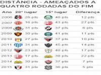 Nos anos em que houve mudanças, o próprio Avaí (hoje fora da zona, em 16º lugar) já conseguiu reagir e escapar. Por outro lado, Vasco e Coritiba – que hoje integram o Z-4 – foram para a Série B por despencarem de posição nos últimos jogos.