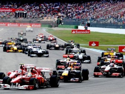 Massa, o terceiro mais rápido do treino classificatório do último sábado, estava na ponta graças a uma bela largada, na qual pulou para a liderança. Dono da pole position, Sebastian Vettel procurou fechar a porta para Alonso, dirigindo-se bruscamente para o lado direito, e foi superado logo pelos dois carros da Ferrari.