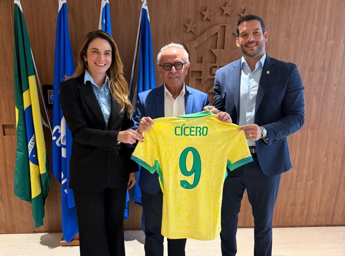 O prefeito Cícero Lucena firmou, nesta quarta-feira (13), na sede da Confederação Brasileira de Futebol (CBF), no Rio de Janeiro, uma parceria que viabilizará a construção de um centro de treinamento com padrão da Federação Internacional de Futebol (Fifa) em João Pessoa voltado à formação de atletas. O acordo foi oficializado ao lado do presidente da CBF, Samir Xaud; da vice-presidente da CBF e presidente da Federação Paraibana de Futebol (FPF), Michelle Ramalho; e do deputado federal Mersinho Lucena.