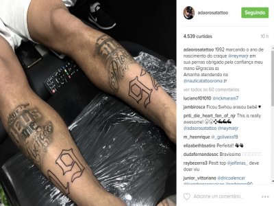 ”1992 marcando o ano de nascimento do craque @neymarjr em sua pernas obrigado pela confiança meu mano gracias”, escreveu o tatuador em seu Instagram, mostrando a foto do novo desenho de Neymar.