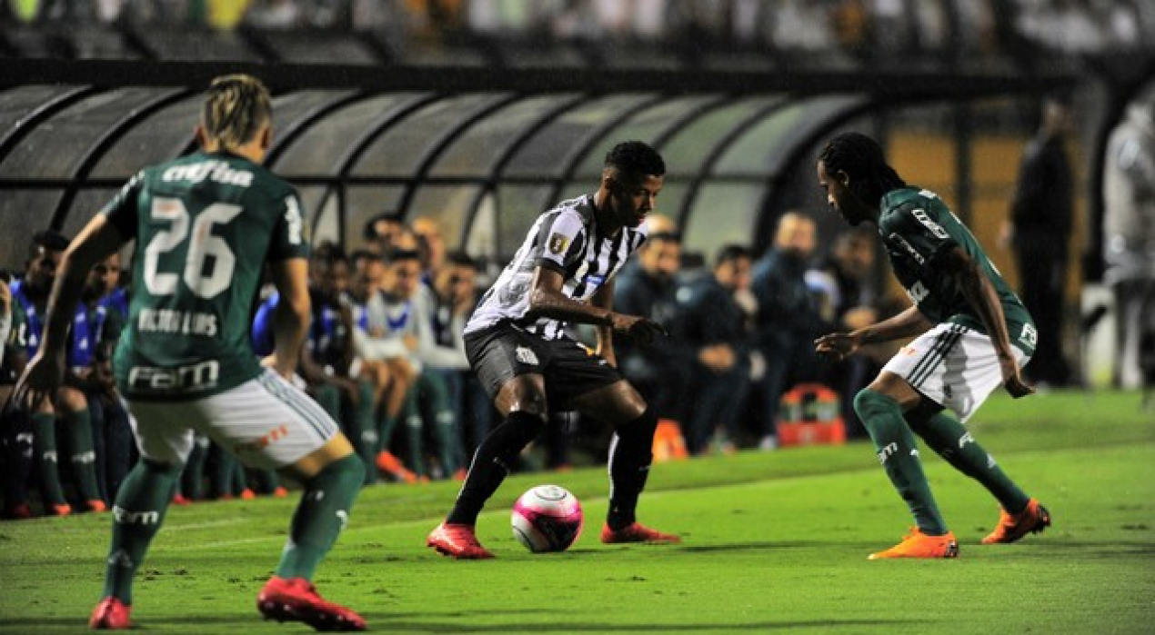 Sem Marcos Rocha, lesionado, Roger Machado escalou Tchê Tchê na lateral direita. Foi a única grande mudança em relação ao time que havia vencido o Santos no sábado por 1 a 0. Por mais irônico que possa parecer, o Verdão teve muito mais volume de jogo, inclusive no primeiro tempo, em que perdeu por 2 a 1 – o problema foram as desatenções do sistema defensivo (Sasha sobe sozinho no primeiro gol, Victor Luis dá condição a Rodrygo no segundo, nas duas únicas vezes em que o Santos passou do meio-campo).