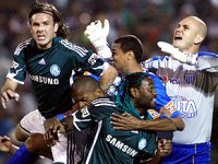 O time catarinense, por sua vez, procurava jogar no contragolpe, aproveitando a velocidade de Marquinhos e Muriqui, que infernizavam a zaga alviverde.
