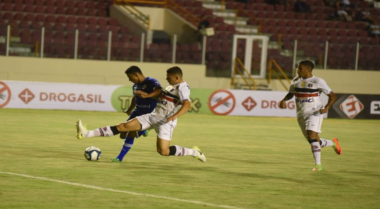 Na estreia de Confiança e Santa Cruz pela Copa do Nordeste, no Batistão, nesta terça-feira, tudo igual. O Tricolor saiu na frente, com gol do volante Jorginho, no primeiro tempo, e os donos da casa empataram com Frontini no segundo. O placar ficou assim: 1 a 1.