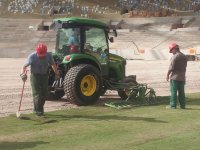 Um trator iniciou o corte da grama, que era enrolada em um tipo de arame, onde se formavam os rolos. Isso tudo era feito no mesmo veículo. A areia usada na plantação é a mesma colocada o estádio, que terá o sistema de irrigação mais moderno do mundo, segundo os responsáveis pela reforma.
