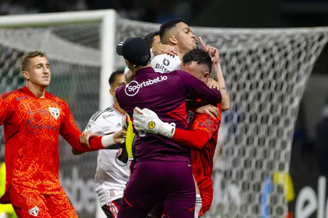 De um possível 3 a 0 o placar se transformou em 2 a 1 porque o São Paulo diminuiu na sequência. Calleri foi puxado, na visão do árbitro, por Gómez na área. O juiz mais uma vez recorreu ao VAR para assinalar a marcação. Luciano deslocou Weverton e deixou o confronto empatado.