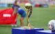 O troféu desmontou ao ser erguido durante a comemoração dos atletas.