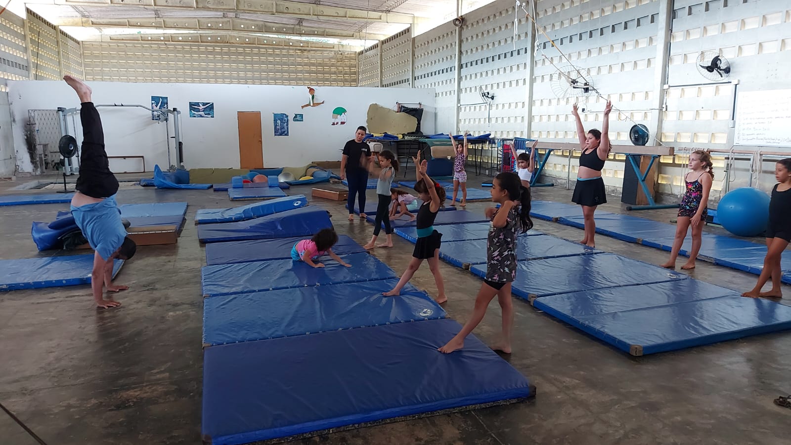 “Elas têm um desempenho incrível. Em menos de um ano e meio de treino elas já fazem mortal para frente, estrelas, reversão para frente e para trás, faz oitava na barra que é um exercício um pouco difícil. Essas estão crescendo”, afirmou Luciano Jardim.
