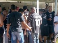 No início da manhã, 15 torcedores fizeram protesto pacífico na frente do portão principal, por onde entram os jogadores para o treinamento. O Corinthians, preocupado, chamou a polícia. Mesmo depois de garantir que a manifestação não teria violência, os torcedores mudaram o plano e deram a volta no CT. Do outro lado, 100 pessoas, segundo a Polícia Militar, fizeram dois buracos em um alambrado que impedia a entrada nos campos. Outros pularam o muro.