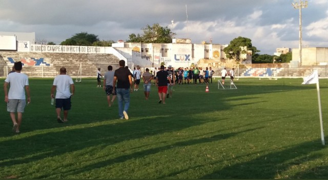 Mais um dia de clima tenso no Estádio Presidente Vargas. Nesta terça-feira, dia da reapresentação do elenco um grupo de torcedores conseguiu ter acesso ao gramado para realizar uma “reunião” com atletas e membros da comissão técnica alvinegras. O ambiente do encontro ficou bastante pesado e os torcedores engrossaram o tom das críticas com relação ao fraco desempenho que o time vem tendo nessa edição do Campeonato Paraibano.