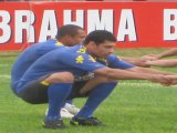 O primeiro alvo é o novato Diego Souza. "Ô, Diego, o Palmeiras está levando 2 a 0, hein? Não vai ser campeão", provoca um deles. O palmeirense, ainda tímido na Seleção, finge que não é com ele e continua correndo em volta do campo.