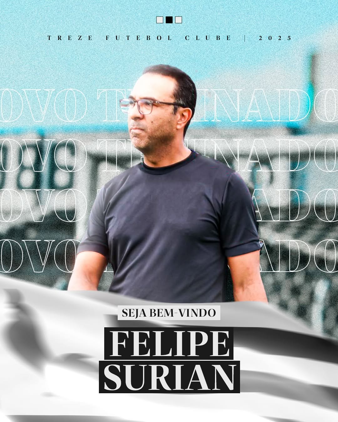 A direção do Treze confirmou a contratação do técnico Felipe Surian para assumir o comando da equipe alvi-negra para a disputa da Série D do Campeonato Brasileiro 2025. O anúncio foi realizado através das redes sociais do clube, que também revelou a chegada do auxiliar técnico, Wanderley Tavares, e do preparador físico, Bruno Araújo.