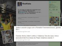 Através de seu Twitter, o craque Kaká, que se recupera de uma pubalgia e desfalcou o Real Madri no jogo de sábado contra o Valencia, revelou que assistiu ao jogo com Ronaldo Fenômeno, atacante do Corinthians, e vibrou com a vitória de seu time por 3 a 2.