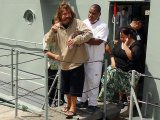 Um enfermeiro o ajudou a descer do navio da patrulha, antes de ele ser levado a um hospital local.
