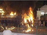 Uma multidão incendiou uma delegacia e veículos de polícia após explosões mataram cerca de oito pessoas durante uma procissão xiita na cidade paquistanesa de Lahore, disseram testemunhas.