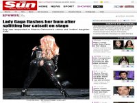 A cantora Lady Gaga acabou mostrando demais durante um show em Vacouver, no Canadá, nesta sexta-feira (11). A cantora estava em frente a milhares de fãs quando sua calça de látex, apertadíssima, rasgou, revelando a calcinha e a meia arrastão que usava debaixo da calça.