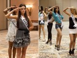 Candidatas ensaiam a batida de continência (Foto: AFP)A final do Miss Universo será no dia 23. Este ano, 20 candidatas vão se classificar para as semifinais do concurso.