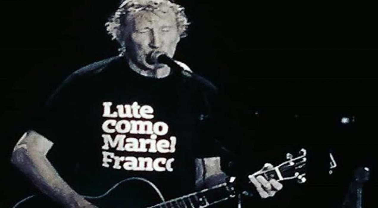 No intervalo do concerto, o fundador da banda Pink Floyd usou uma camisa preta na qual se lia “Lute como uma Marielle Franco” e projetou no telão um recorte de jornal sobre a morte da militante.