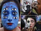 Competidora mostra sua pintura facial artística usada em campeonato. (Foto: Amit Dave/Reuters)