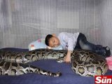 Um pai encontrou a babá perfeita para o filho de 13 anos – uma cobra de quase 100 quilos e 4,57 metros. Chan Liu vive com o filho Azhe na cidade de Dongguan, na China. O menino passa o dia inteiro agarrado à píton gigante.
