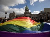 Manifestantes pró-casamento gay fazem ato em frente ao Congresso da Argentina, em Buenos Aires. (Foto: AP)