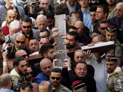 Como parte das comemorações que antecedem a festa da Páscoa, os fiéis percorrem em procissão a Via Crucis, localizada no setor oriental de Jerusalém, palestino, mas ocupado e anexado por Israel desde 1967.
