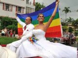 "Estamos muito felizes com o que ocorreu hoje", disse Sánchez em seu perfil no serviço de microblogging Twitter, logo depois do casamento. "(Foi) um passo grande em uma Cuba pequena."