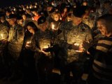 Soldados e familiares participam de vigília durante a madrugada na base militar de Fort Hood, no Texas, após o ataque que deixou 13 mortos e 30 feridos na sexta (6).