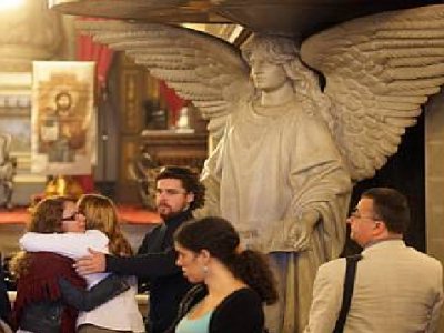 Ana Cláudia disse que o consolo "é que existe um Deus vivo e verdadeiro". "Tenho esperança de que alguém esteja numa boia, lutando pela vida. Acho que existe um Deus de milagre", disse, emocionada. Antes de entrar na igreja, ela pediu para ler um texto que escreveu em homenagem ao primo.