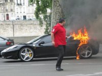 Poucos dias depois de comprar uma Ferrari 458 Italia, o dono do superesportivo italiano teve uma surpresa desagradável. Enquanto dirigia pelas belas ruas de Paris, capital francesa, o motorista viu, pelo retrovisor, labaredas saírem da região da roda traseira esquerda.