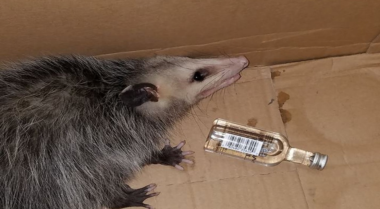 Responsáveis do refúgio de vida selvagem Emerald Coast disseram que a gambá foi resgatada por um policial, na cidade de Wlaton Beach, em 24 de novembro. Um empregado da loja de bebidas encontrou o animal próximo a uma garrafa quebrada e vazia de bourbon, um tipo de uísque. Segundo ele, a fêmea parecia alterada.