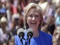 A ex-primeira-dama e ex-secretária de Estado americano Hillary Clinton realizou neste sábado (13) seu primeiro discurso como pré-candidata oficial do Partido Republicana à presidência dos Estados Unidos, em um comício em Nova York.