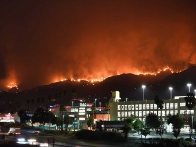 Cerca de 450 bombeiros tentam apagar um incêndio em Burbank, no Vale de San Fernando, em Los Angeles, na Califórnia. O fogo começou durante a tarde de sexta-feira (1º) e ainda não foi controlado neste sábado (2).