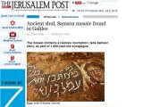 Autoridades de antiguidades de Israel anunciaram que uma escavação arqueológica descobriu, em uma sinagoga na Galileia, um desenho em mosaico descrevendo a história bíblica de Sansão, junto com uma escrita em hebreu. O mosaico tem aproximadamente 1.600 anos.