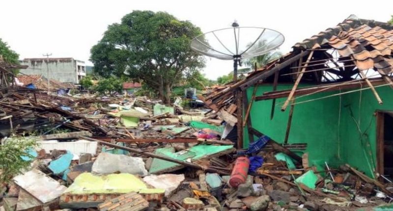 Dezenas de edifícios ficaram destruídos pela onda gigante, que atingiu as praias do sul de Sumatra e do extremo oeste de Java por volta das 21h30 locais de sábado (12h30 de Brasília), informou, em um comunicado, o porta-voz da agência de gestão de desastres do país, Sutopo Purwo Nugroho.