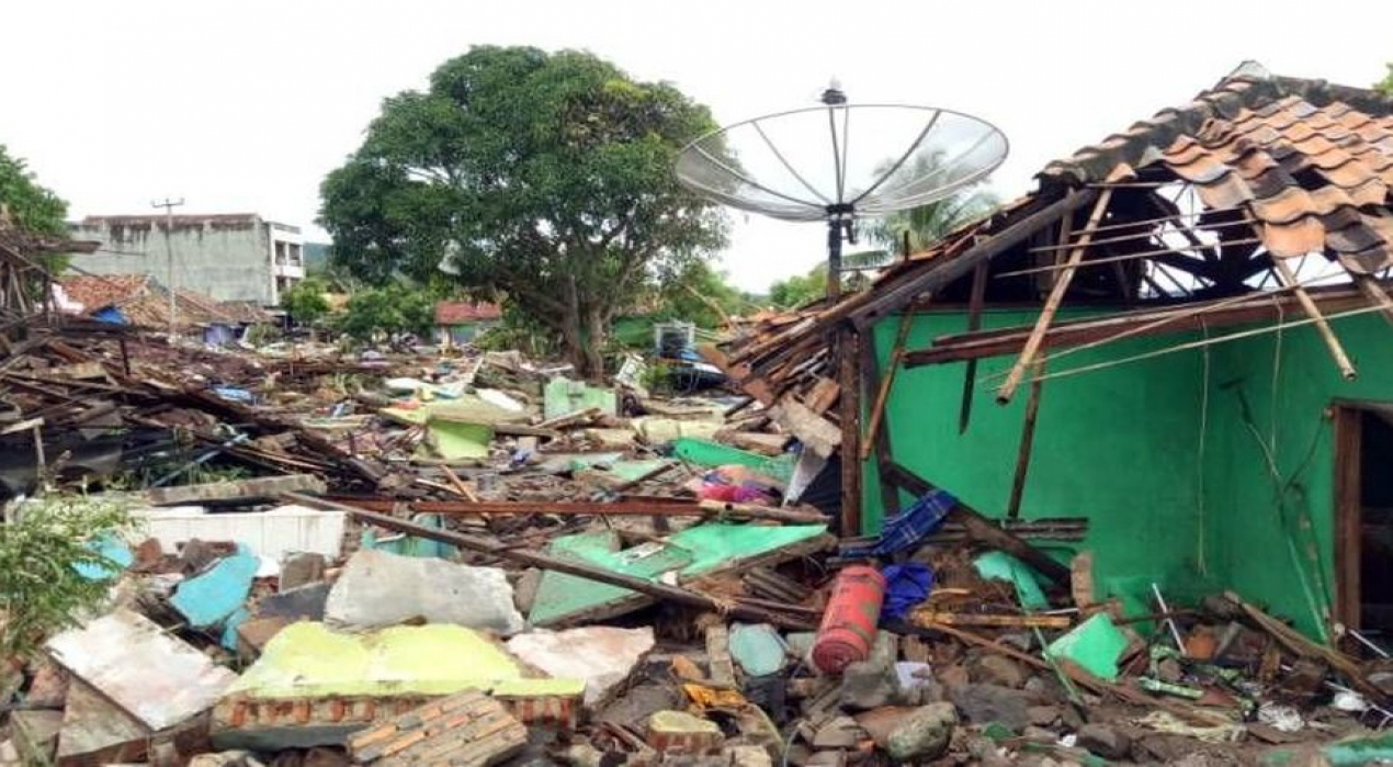 Dezenas de edifícios ficaram destruídos pela onda gigante, que atingiu as praias do sul de Sumatra e do extremo oeste de Java por volta das 21h30 locais de sábado (12h30 de Brasília), informou, em um comunicado, o porta-voz da agência de gestão de desastres do país, Sutopo Purwo Nugroho.