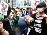 Manifestantes marcharam perto da sede da Tokyo Electric Power Company (Tepco) durante um protesto antinuclear neste sábado (6) em Tóquio, no Japão. A manifestação ocorreu no mesmo dia em que o país lembrou as vítimas da bomba atômica de Hiroshima, em 1945.
