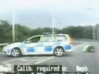 Imagens da polícia da Inglaterra mostram o momento em que um ladrão desrespeitou um bloqueio policial e bateu numa das viaturas.