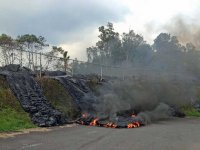 Os agentes da Defesa Civil do condado do Havaí informaram que a lava segue para o depósito de lixo de Pahoa, e já cobriu o asfalto da estrada que o rodeia.