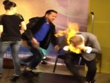 Um mágico norte-americano sofreu graves queimaduras depois que um apresentador de televisão na República Dominicana pôs fogo na cabeça do ilusionista durante um programa, como forma de “bênção”.