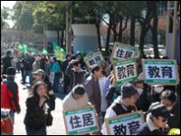 Cerca de 1.500 brasileiros participaram neste domingo de uma manifestação no centro de Nagóia, capital da província de Aichi, no Japão, para exigir direitos trabalhistas, pedir por emprego e também por atenção do governo japonês para as questões sociais.