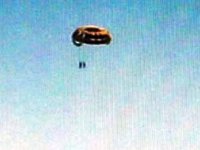 Pouco depois, a guarnição do paraquedas se rompeu e o pai de família despencou em queda livre no mar.