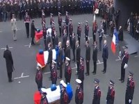 O presidente da França, François Hollande, participa na manhã desta terça-feira (13) de homenagem aos três policiais mortos durante os atentados terroristas ocorridos na semana passada em Paris: Franck Brinsolaro, Ahmed Merabet e Clarissa Jean-Philippe.